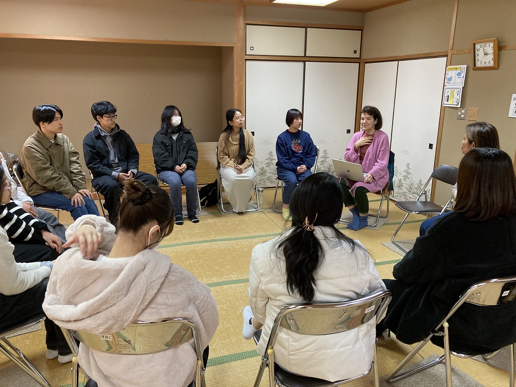 1年生「地域協働総合実習入門」多文化共生班は、12月10日に高知県北部・嶺北地域の土佐町と本山町を訪れ、多文化共生に関する地域の取り組みを学びました。
