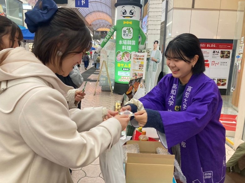 3年生は商店街関係者との打ち合わせに加え、高知市への道路使用許可申請や警察、保健所との調整など、多くの手続きを重ねて開催にこぎつけました。実際の運営を見据えた準備を通して、学外イベントを実施する難しさと責任を学ぶ機会にもなりました。