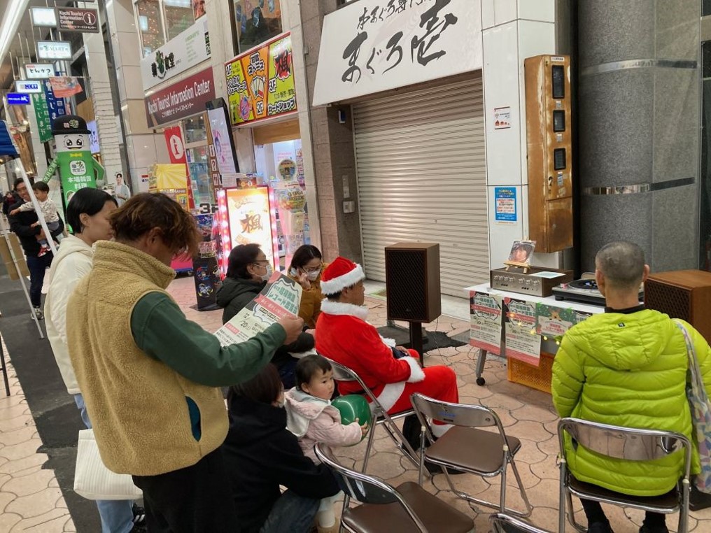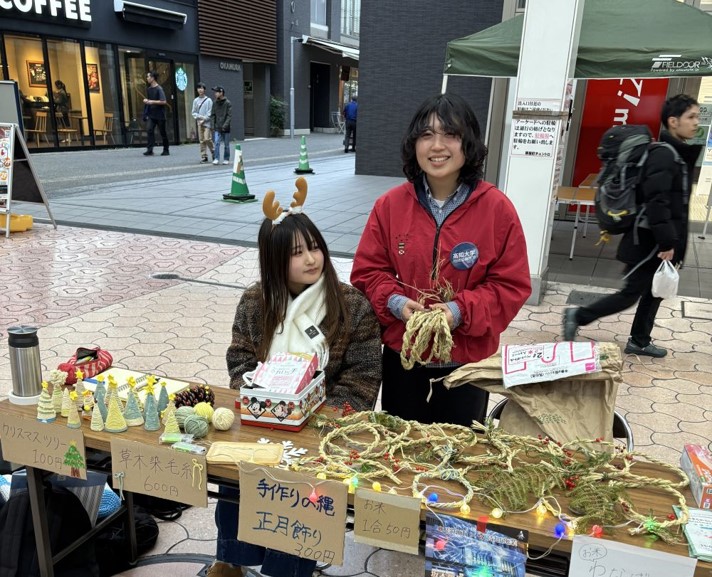 「おまちのちいさなChristmas Night」は、実習地の取り組みを紹介しながら、クリスマスマーケットや商店街のイルミネーションを楽しんでもらおうと企画されました。学部としては、おまち(高知市中心商店街)で初めて行う本格的な活動紹介の場となりました。