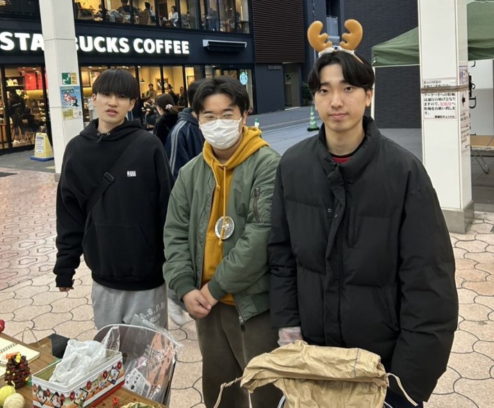 当日は、蜷川・土佐山・大豊・佐賀北部・地域プロモーションの各実習班が協力し、実習地の特産品などを販売しました。4つのブースを回った来場者には、学部10周年記念デザインの特製クッキーをプレゼント。レコードから流れるクリスマスソングがアーケードに響き、温かな雰囲気に包まれました。