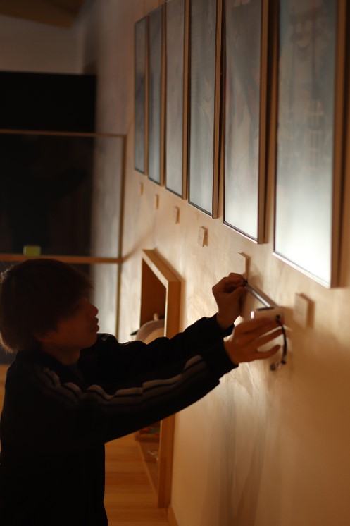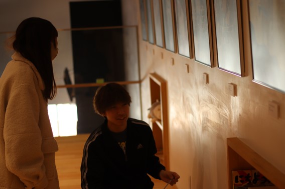 学生たちは、一点一点に思いを込めながら展示作業に取り組み、空間全体の見え方や作品同士の関係性を意識しながら準備を進めました。