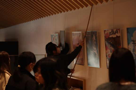 12月16日、デザイン班の2年生・3年生は、なかとさ美術館(ギャラリーここくさ)にて、開催予定の展覧会に向けた作品の搬入および展示作業を行いました。