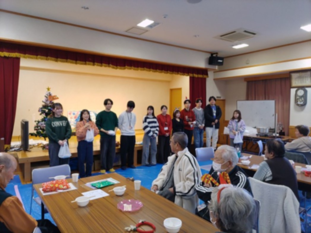 HOME > 学部からのお知らせ > 授業風景 > みんなで過ごす冬のひととき 稲生班Wクリスマス会(南国市稲生実習班) みんなで過ごす冬のひととき 稲生班Wクリスマス会(南国市稲生実習班) 授業風景2025年12月25日 12月19日、稲生班の現地実習は、午前に「稲生ふれあいサロン クリスマスビンゴ」、午後に「小久保ふれあいサロン クリスマス会」を行う、Wクリスマス会となりました。 この日は4年生・3年生が全員そろって参加し、終始にぎやかな実習となりました。あわせて、稲生テーマソング「心なごむいなぶ」の歌詞ボードのお披露目も行いました。 地域の皆さんと一緒に、あたたかな年末のひとときを過ごすことができました。 Tweet < 前のページヘ 次のページヘ > サイトマップ プライバシーポリシー