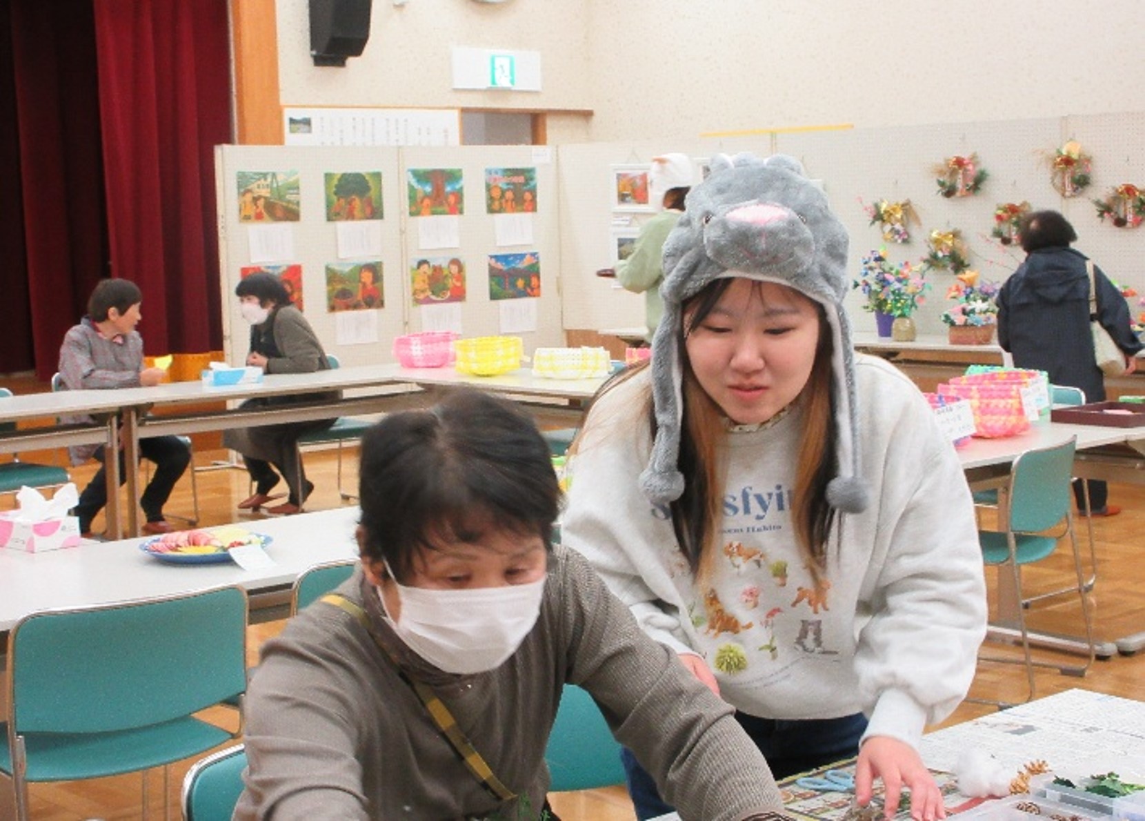 HOME > 学部からのお知らせ > 授業風景 > 東豊永文化祭で地域の方々とリース作り(大豊町東豊永実習班) 東豊永文化祭で地域の方々とリース作り(大豊町東豊永実習班) 授業風景2026年01月23日 12月6日、大豊町東豊永実習班は、東豊永文化祭に参加しました。当日は、地域の方々と一緒にリース作りを行い、材料選びや飾りつけを楽しみながら交流を深めました。会場では、世代を超えた会話が自然と生まれ、和やかな雰囲気の中で文化祭を盛り上げることができました。 Tweet < 前のページヘ 次のページヘ > サイトマップ プライバシーポリシー