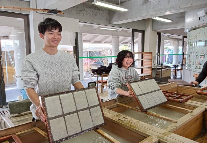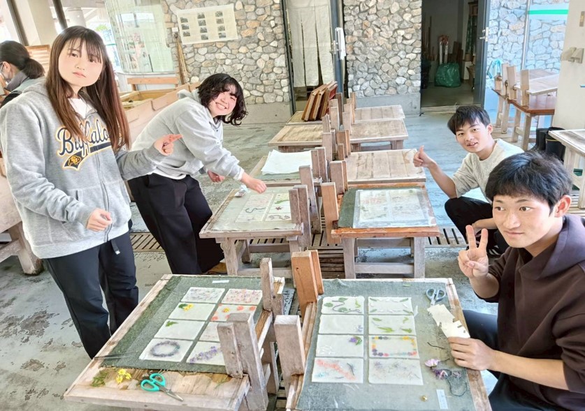 HOME > 学部からのお知らせ > 授業風景 > 紙漉きから原料まで ― 和紙づくりを支える仕事を学ぶ(黒潮町佐賀北部実習班) 紙漉きから原料まで ― 和紙づくりを支える仕事を学ぶ(黒潮町佐賀北部実習班) 授業風景2026年01月23日 12月9日、黒潮町佐賀北部実習班の2年生は、いの町にある土佐和紙工芸村くらうどを訪れ、和紙の活用をテーマとした実習を行いました。当日は、紙漉き体験に加え、和紙の原料となるコウゾや、染料として用いられるクサギの収穫作業にも取り組みました。実際に素材に触れ、制作の工程を体験することで、地域資源としての和紙の価値や可能性について理解を深める機会となりました。 Tweet < 前のページヘ 次のページヘ > サイトマップ プライバシーポリシー
