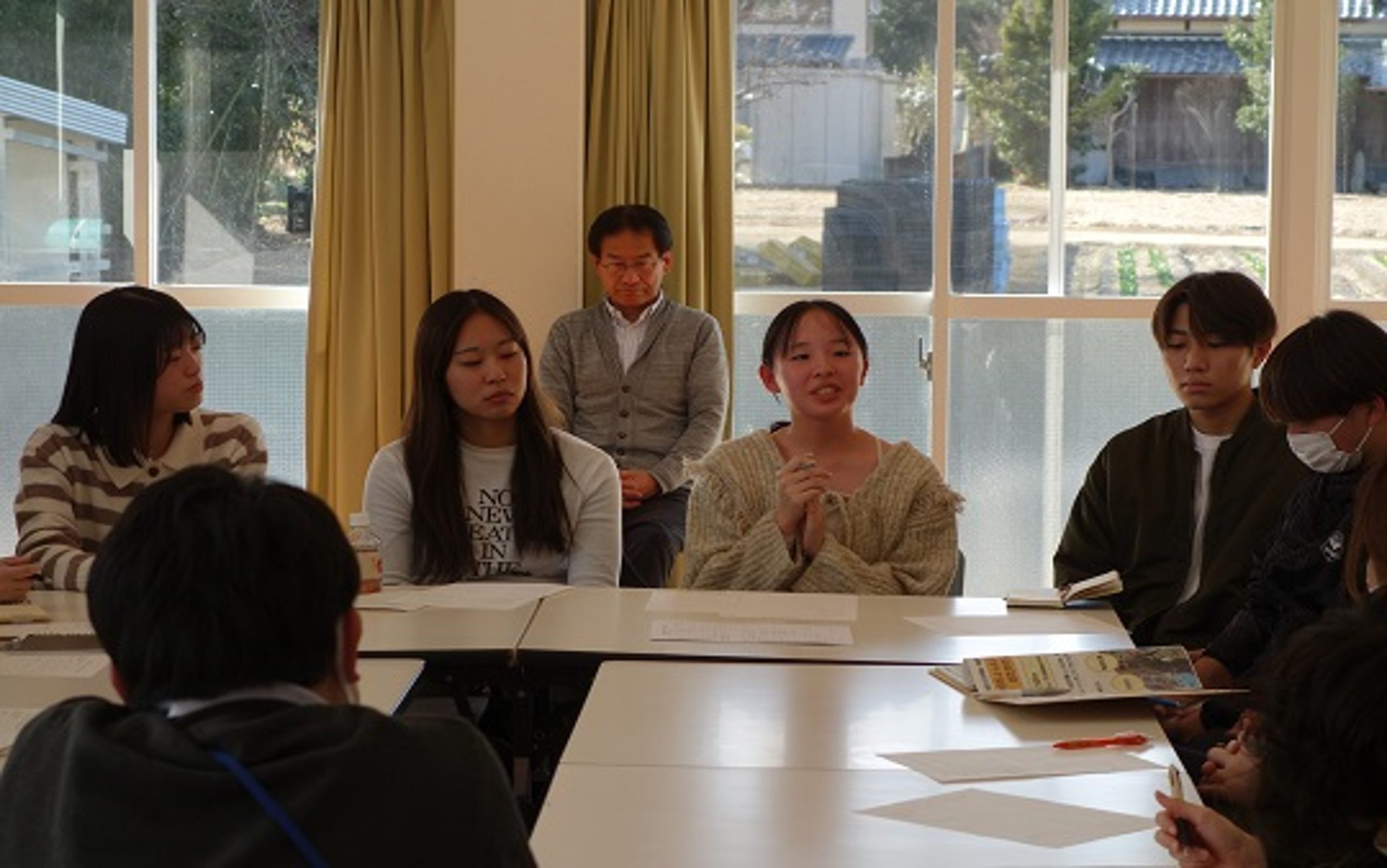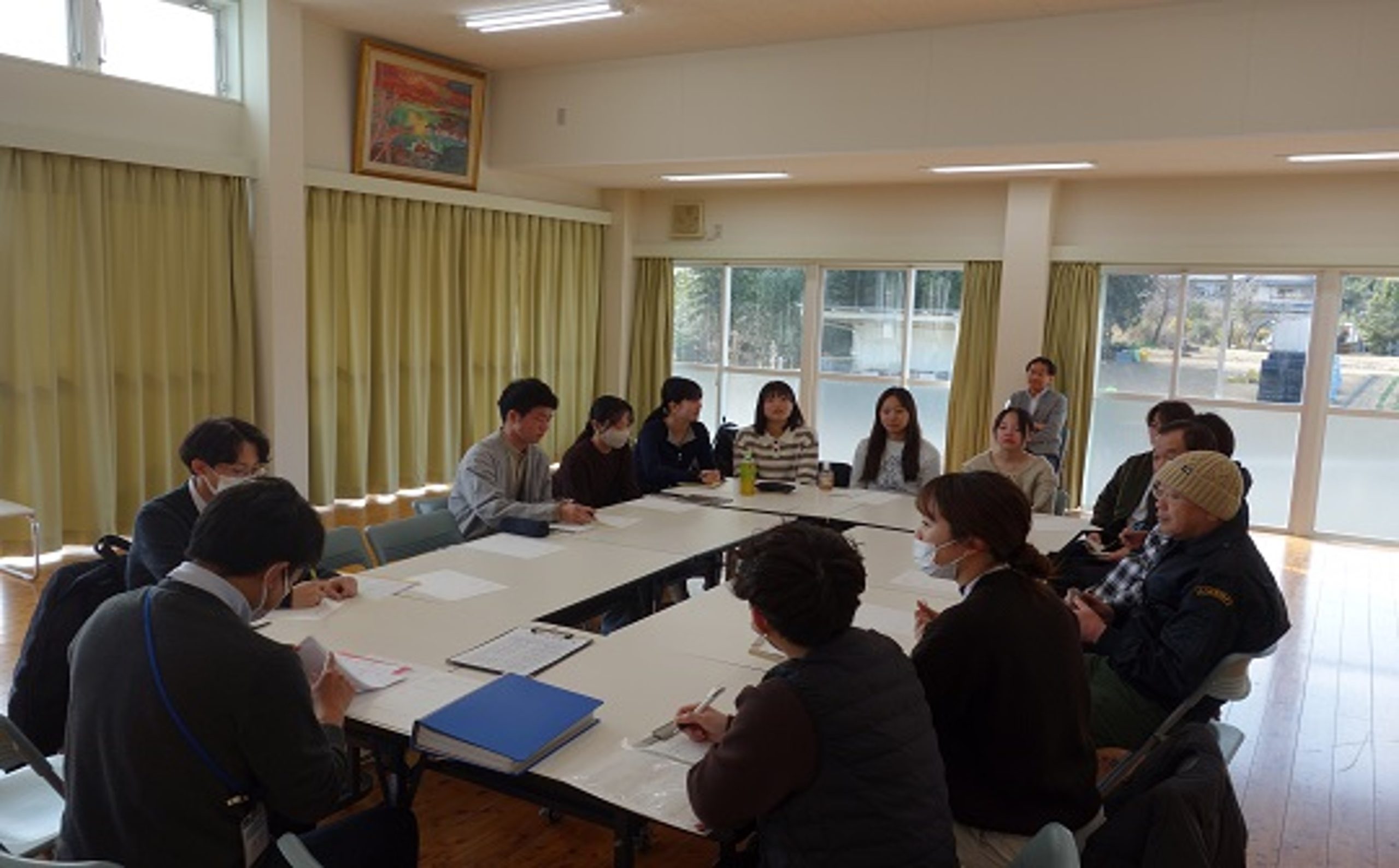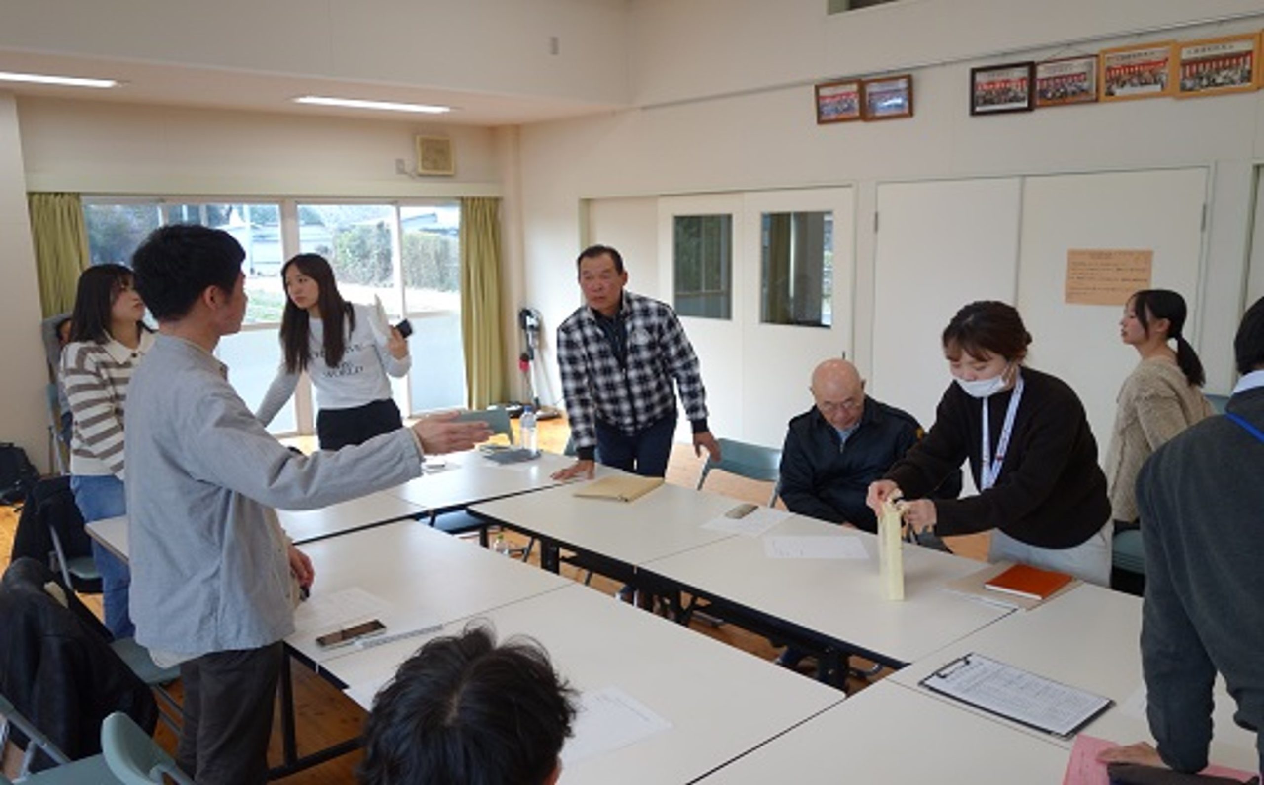 実習では、実習受入組織「はるの大好き!スズメ元気会」の「おたすけ交流部会」に参加しました。部会では、学生が作成・配布した広報ポスター「ちょっとした困りごと、ありませんか」への反響について報告がありました。これまでに地域の方々から5件の相談が寄せられ、すでにそれぞれ対応が行われています。このうち1件については、学生もボランティアとして草引き作業に参加しました。