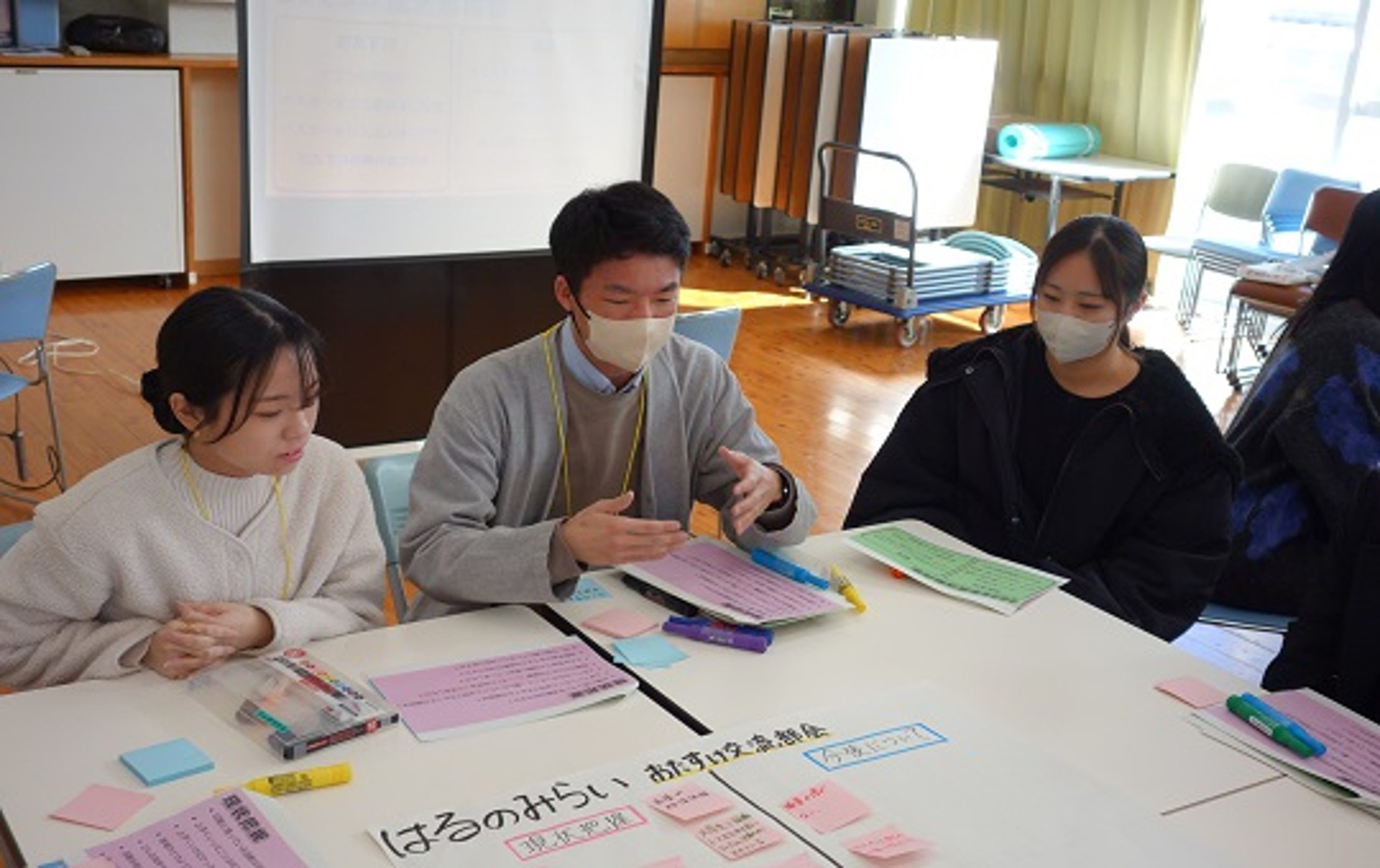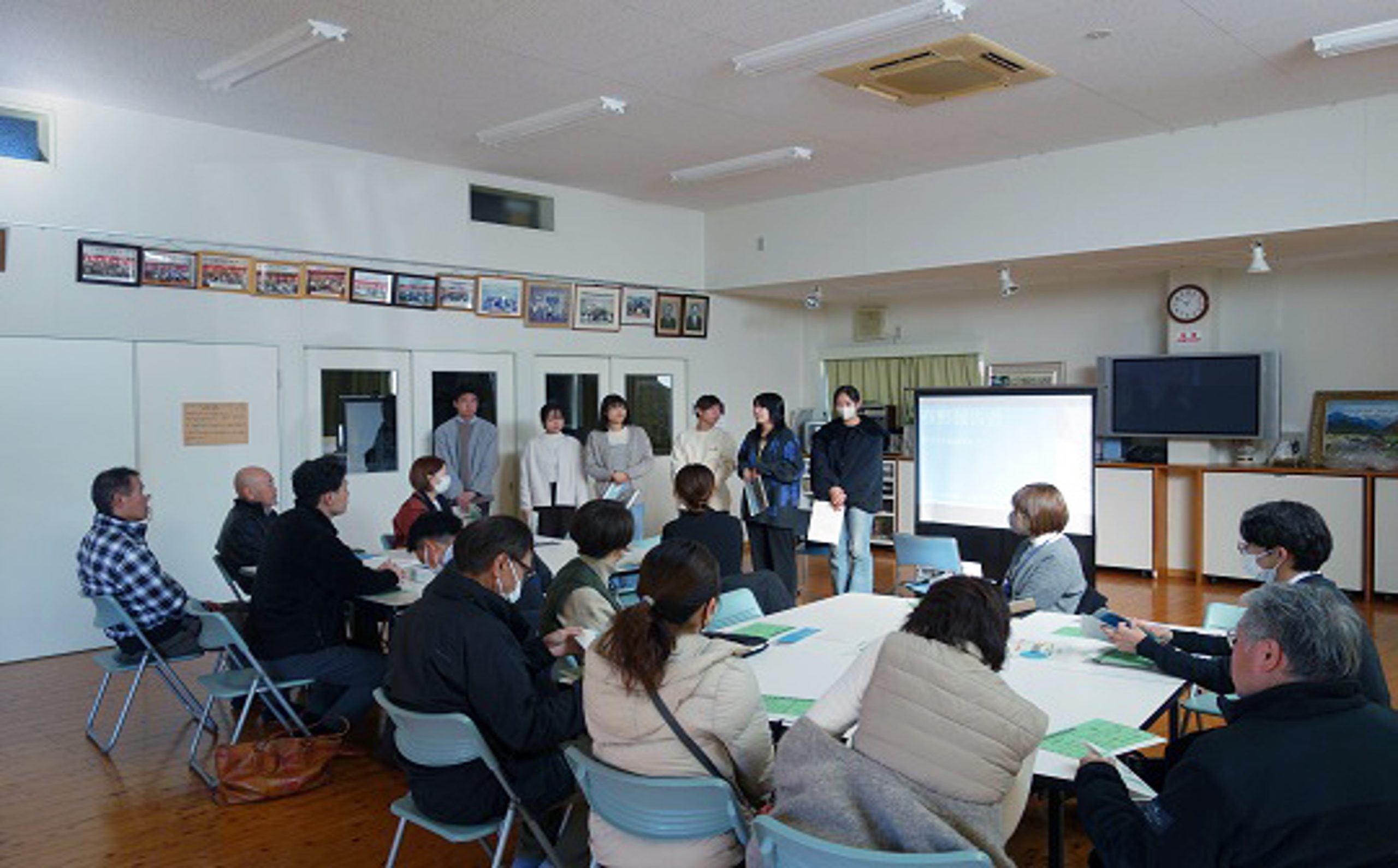 3年生は、この2年間にわたる春野での事業企画立案における試行錯誤について報告しました。あわせて、その過程を経て、実習受入組織であるスズメ元気会と協働して立案・実施してきた各種企画について説明しました。