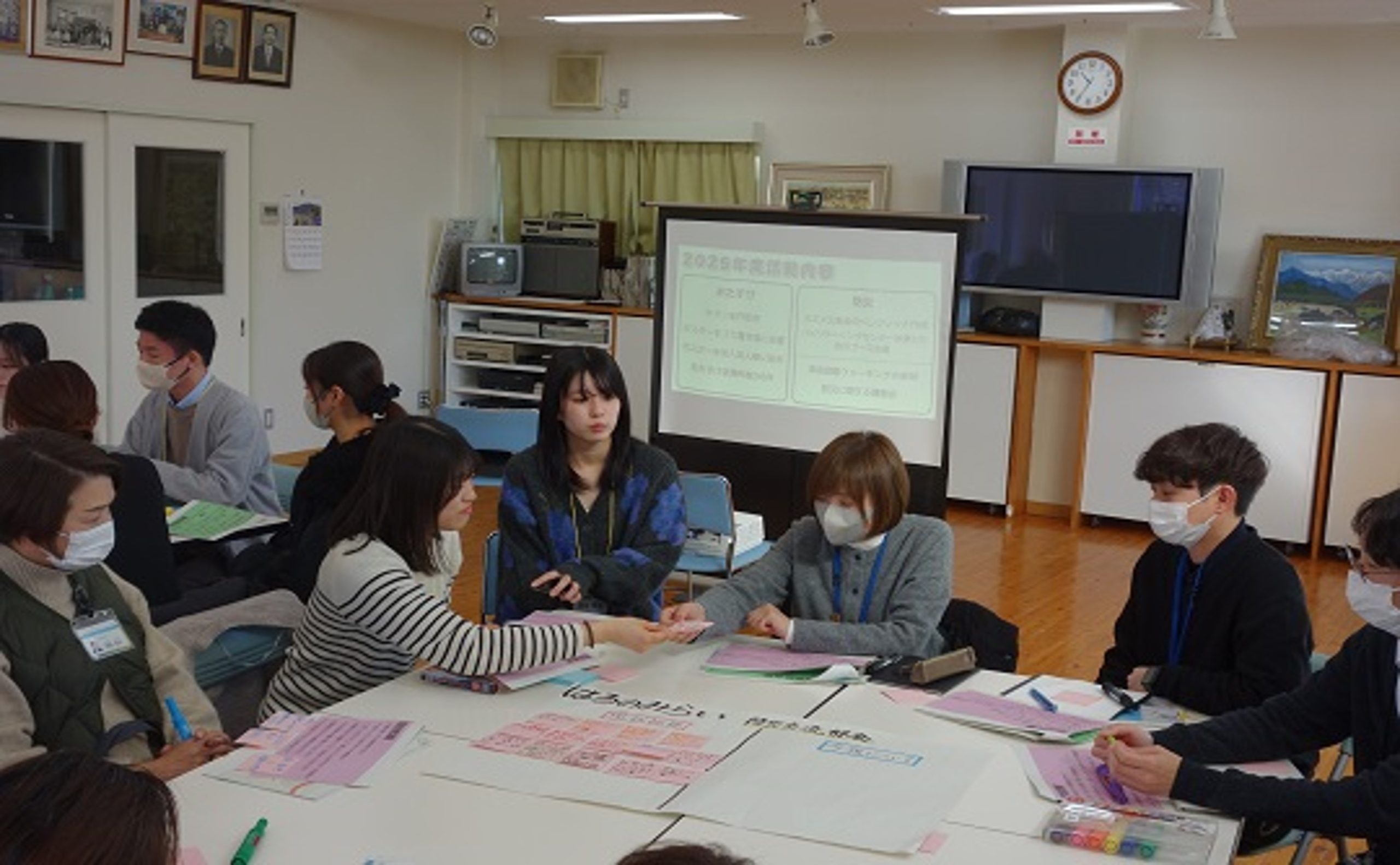 2年生は、夏祭りや秋祭りなどの地域行事への参加や、耕作放棄地での農作物栽培といった活動を通して、地域の方々とさまざまな形で関わる中で感じたことや考えたことについて振り返りました。また、それらの学びを踏まえ、来年度に向けて検討しているイベント企画案についても報告しました。