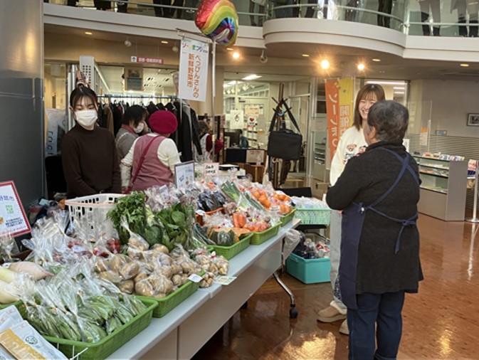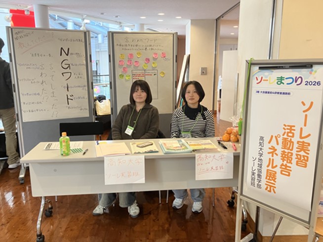 また当日は、サービスラーニング演習のオプション実習として1年生も参加しました。総合受付や「べっぴんさんの新鮮野菜市」の運営補助を通して、ソーレまつりの現場を体感し、実践的な学びの機会となりました。