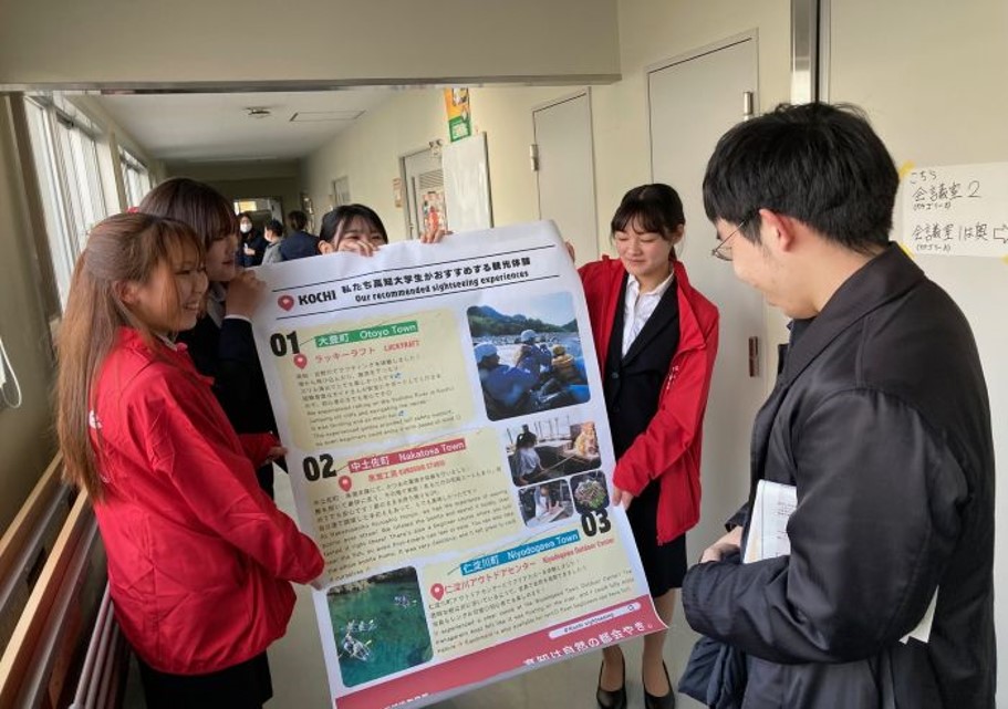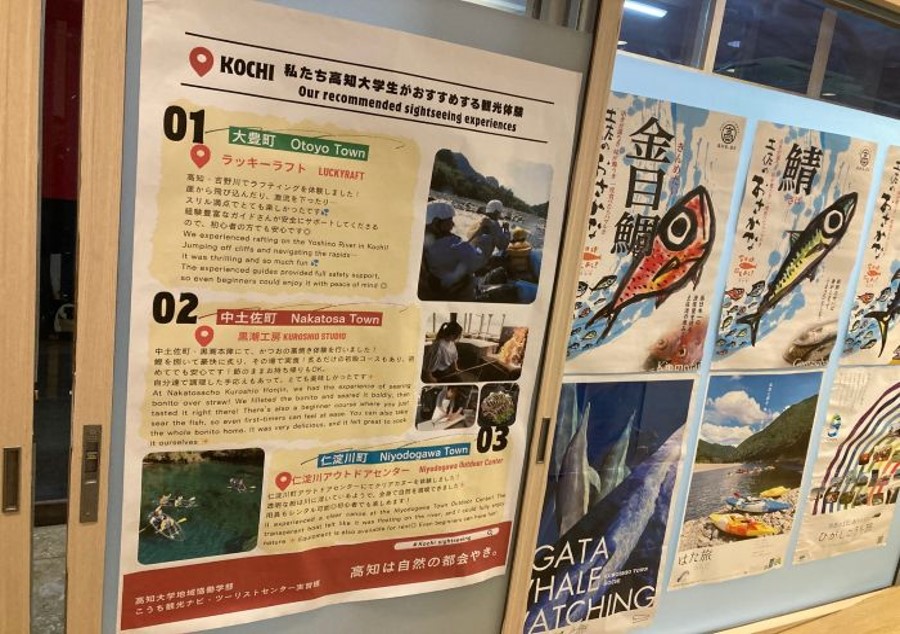 現在、そのポスターは帯屋町2丁目商店街にあるツーリストセンターに掲示していただいています。学生の体験と視点を通して、高知の魅力を国内外の観光客へ発信しています。