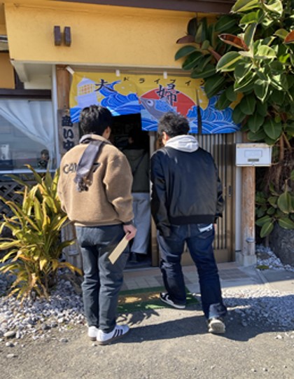 よく晴れた2月4日、室戸を主とした漁村実習班2年生は、ラーメン企画の進捗報告とご助言伺いのため、室戸に赴きました。