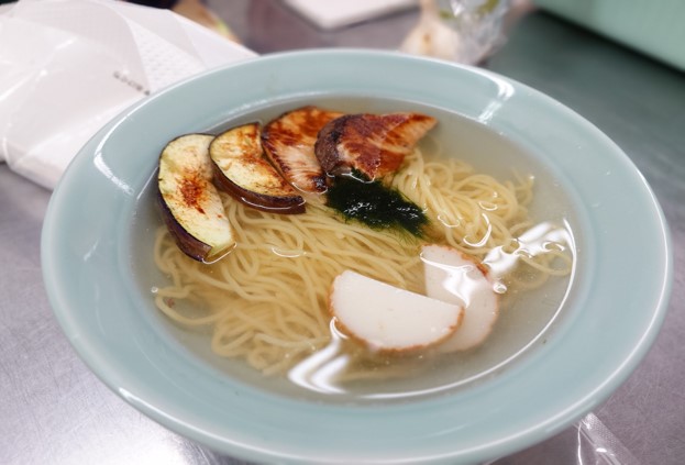 あわせて、室戸の伝統野菜「ぼたなす」についても、天ぷら以外の調理法として焼きによる試作を行いました。素材本来の風味を生かした仕上がりとなり、ラーメンのトッピングとしての活用方法について検討を深めました。