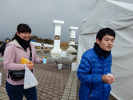 この冬一番の冷え込みの中、途中で休憩のため交代をする際も、誰が休憩していないかなど考えて声かけを行う学生もいました。
