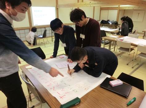 1月31日、2年生実習土佐山メンバーは、中川をよくする会メンバー、高知市土佐山地域振興課、地域の皆さんに集まってもらい、実習成果報告会を実施し、事業計画の共有、事業内容に関する質疑応答を行ないました。また、中川をよくする会との共催でワークショップを実施しました。ワークショップでは、「オーベルジュ土佐山設立20周年イベントについての検討」、「20年後の中川地区を考える」の2つをテーマとして行なわれました。ここで得られた成果は、実習の事業計画にも反映させていく予定です。