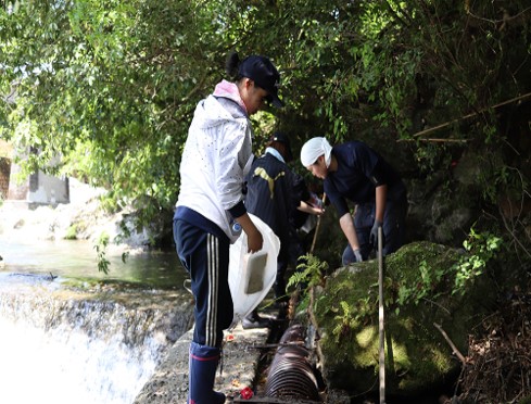 今回はその水路・山道を清掃しました。大学生はとんとんの店(中川開発)の鎌倉さんやオーベルジュ土佐山の支配人・阿久津さんらと一緒に清掃活動を行いました。