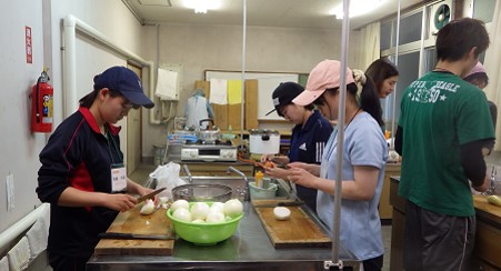 午前は、地域の方々と一緒に夏に向けたプール清掃、国道沿いの草払い清掃、クリーンセンターの草払い清掃と、昼食のカレー作りを行いました。午後には、地域の方々にお越しいただき、交流ワークショップを実施しました。あいにくの雨でしたが、石原の景観の美しさと石原地区のみなさんの温かさに包まれる、貴重な機会となりました。