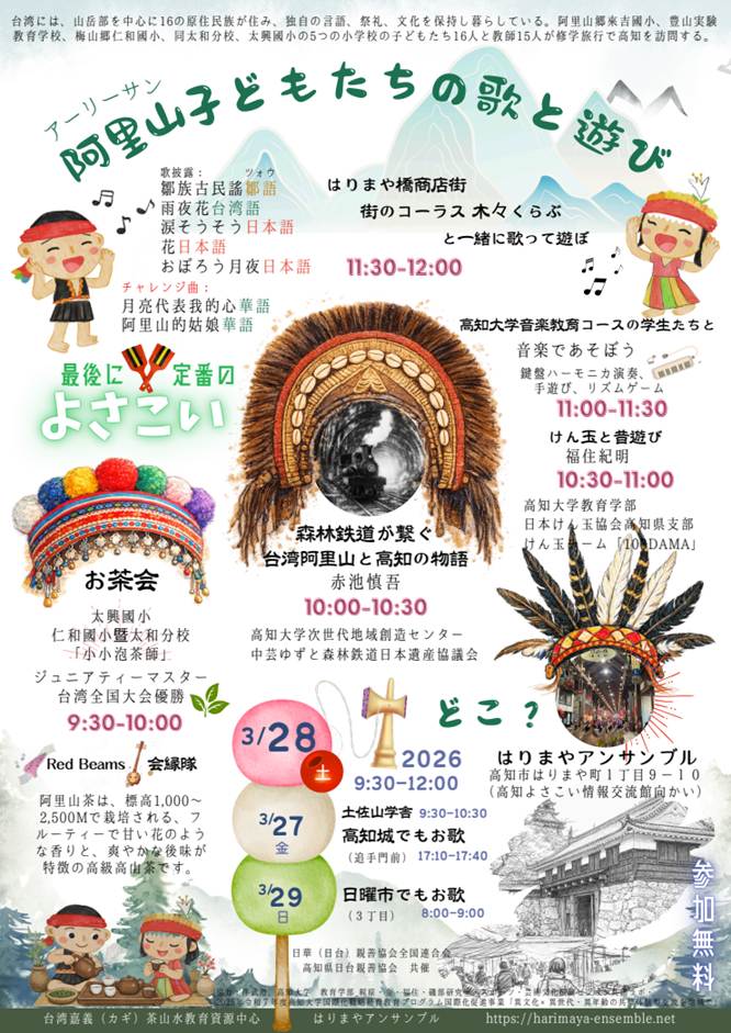 3月28日(土)に,はりまやアンサンブルにて,“スポーツ・芸術文化共創LABO”が協力するイベント「阿里山子どもたちの歌と遊び」が開催されます。