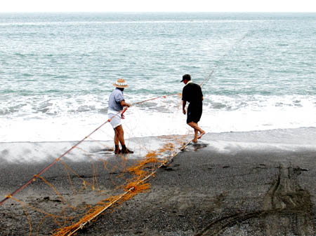 2003年7月21日:香我美町岸本の地引き網で標本を採集しました.当日は町を挙げての「無人島長平祭り」でした.(町田・井手・秦泉寺・坪井)