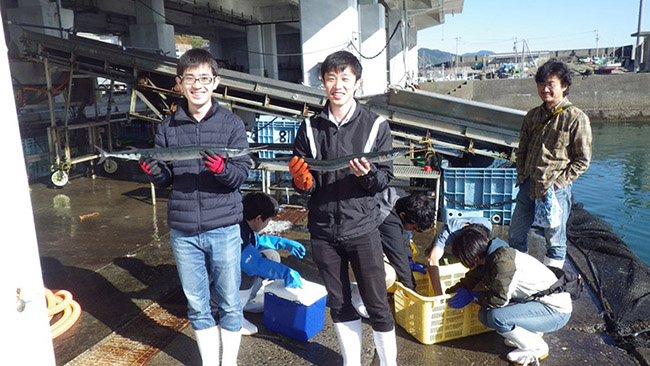 2018年12月12日:室戸市の定置網で標本を採集しました.(水町.泉,甲斐さん)